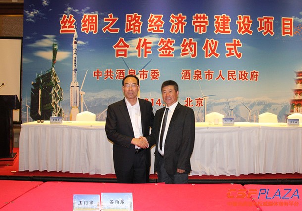 CSPPLAZA光熱發電網訊:9月29日,酒泉市絲綢之路經濟帶建設合作項目座談會暨項目合作簽約儀式在京舉行。共計30個包括光熱發電在內的項目和酒泉(quan)市及其下轄的7個縣市區簽約,簽(qian)約(yue)總金額達(da)134.9億元。秦皇島市瑜陽光能科技有限公司總經(jing)理劉振(zhen)中帶隊(dui)參加(jia)了此(ci)次座談(tan)會,并就(jiu)玉門(men)25兆瓦太陽能光熱項目(mu)與玉(yu)門市政(zheng)府(fu)正式簽約。