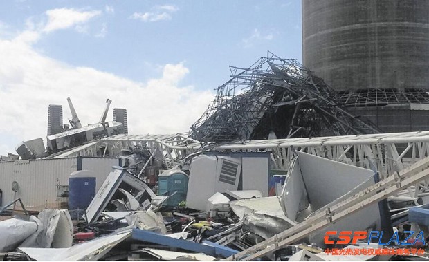 CSPPLAZA光熱發電網訊:南非Upington在建的(de)50MW塔式光熱電站Khi Solar One項目當(dang)地時間11月3日遭受(shou)了一場十分猛烈(lie)的(de)暴(bao)風雨的(de)襲擊,風暴(bao)于(yu)當(dang)天下午的(de)14點開(kai)始肆(si)虐,對項目地的(de)相(xiang)關建筑物及建設設施造(zao)成了巨(ju)大破壞,并造(zao)成兩名(ming)工(gong)人(ren)死(si)亡,七(qi)名(ming)工(gong)人(ren)受(shou)傷。