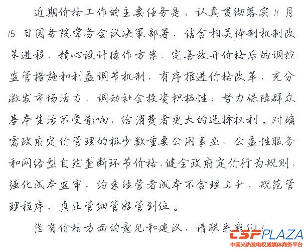 許昆林特別強調了要最大限度地縮小政府定價范圍,“今后價格工作將牢固樹立市場觀念、法治觀念和群眾觀念,加快推進價格改革、最大限度地縮小政府定價范圍,充分發揮市場決定作用;最大力度地改革和完善定價機制規則、減少政府直接制定價格水平;最大程度地實現公開透明,使價格權力在陽光下運行。”