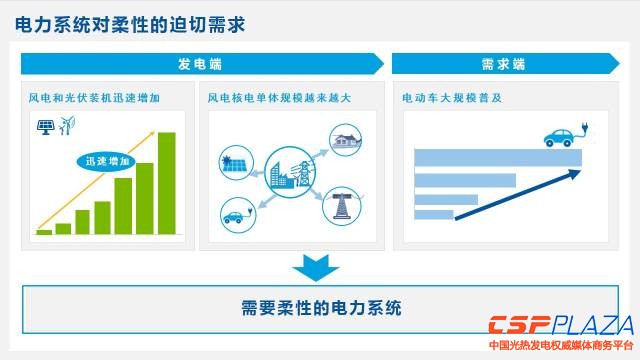 對于傳統電力系統來說,最大的挑戰是對于柔性的迫切需求。在發電端,隨著成本快速下降和各國相關政策強力支持,包括風電和光伏在內新能源裝機正在全球迅速增加。這些新能源裝機既包括大規模集中式發電,比如我國西北的風電基地,也包括小規模的分布式發電,比如沿海地區的屋頂光伏電站,而且,這些新能源所發電力,大部分仍將是并網應用,但是伴隨著新能源規模的快速擴張,由于布局不合理、輸配電設施建設滯后等原因,導致新能源發展出現了“并網難”、設備利用小時低、能源浪費、安全事故頻發等問題。