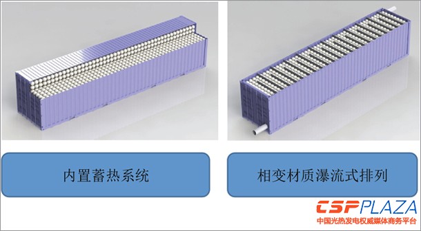 無數個儲熱球次序排列在集裝箱式的儲熱箱體中,就形成了一種獨特的集裝箱式相變儲熱系統。目前,儲熱球的排列方式有內置式和相變瀑流式兩種,可根據項目場地的大小選擇不同的排列方式,兩種儲熱箱在制作費用方面會有所差異。(見圖2)