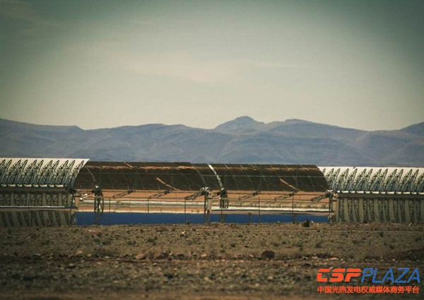 Noor1電站位于摩洛哥Ouarzazate省Marrakesh市南部200公里,是一個裝機規模為160MW、配置3小時熔鹽儲熱系統的槽式光熱電站。