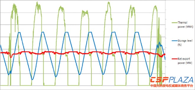 圖:Gemasolar塔式電站(zhan)一(yi)周電力生產曲(qu)線(xian)