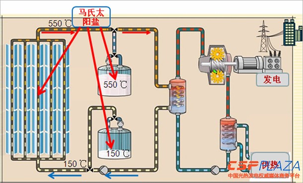 圖:百吉瑞獨(du)創的馬氏太陽(yang)鹽傳熱(re)蓄熱(re)系統