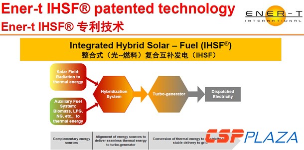 另一種路徑會更多的關注于這方面的解決方案,開發綜合儲能電站,即光-燃料互補的整合式電站。我們的Ener-t槽式集熱器提供CSP電能、由鍋爐供給的傳統石化/生物質電能,結合熱能和光能共同發電。以整合的方式來創造很好的優勢。發電系統包括裝機系統和動力島。