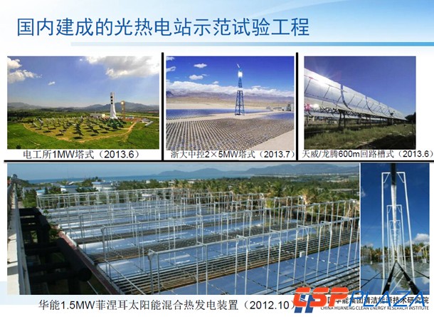 圖:國內(nei)已建成的(de)部分光(guang)熱發(fa)電(dian)示范項目