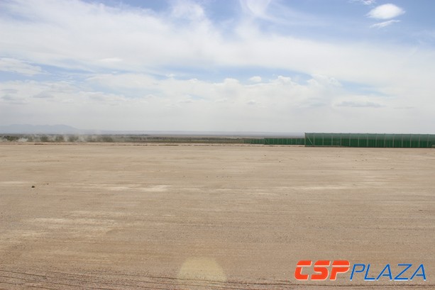 該項目的(de)(de)場平(ping)工作此(ci)前就已完成(cheng),防風(feng)墻也早已設置(zhi)完畢。記者(zhe)在現(xian)場看(kan)到,約(yue)8米高的(de)(de)防風(feng)墻矗(chu)立在場址周(zhou)圍,這(zhe)些防風(feng)墻未來將大大降低外來風(feng)速(su),減小(xiao)沙塵對場內(nei)集(ji)熱系統的(de)(de)不(bu)利影響。