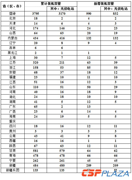 截至2015年9月底,全國光伏發電裝機容量達到3795萬千瓦,其中,光伏電站3170萬千瓦,分布式光伏625萬千瓦。1-9月全國新增光伏發電裝機容量990萬千瓦,其中,新增光伏電站裝機容量832萬千瓦,新增分布式光伏裝機容量158萬千瓦。1-9月全國累計光伏發電量306億千瓦時,棄光電量約30億千瓦時,棄光率為10%;棄光主要發生在甘肅和新疆地區,其中,甘肅省棄光電量17.6億千瓦時,棄光率28%,新疆(含兵團)棄光電量10.4億千瓦時,棄光率20%。
