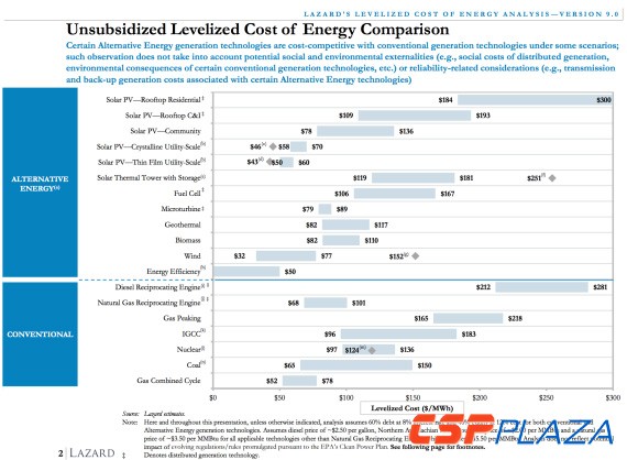 Lazard在報告中指出,“這份分析報告是為了建議政策制定能夠針對風電和規模型太陽能,這樣的成本效益更高。”