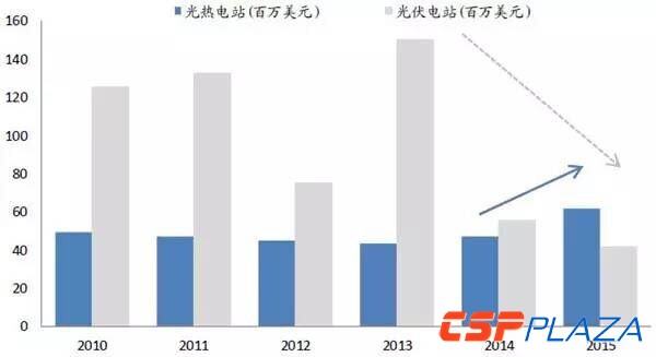 在政府政策的支持下,美國的光熱電站項目也陸續開工,2013和2014年是美國光熱裝機量爆發的兩年。