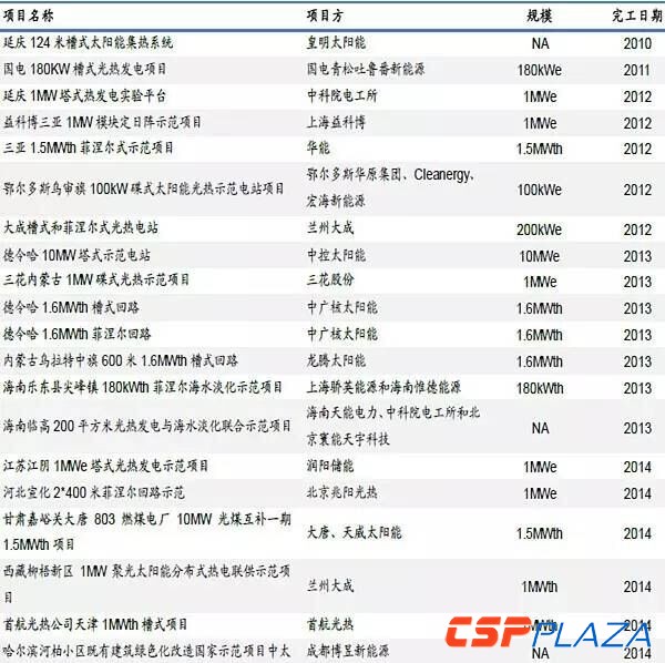 圖:中國已建成光熱電站項目(來源:CSPPLAZA)