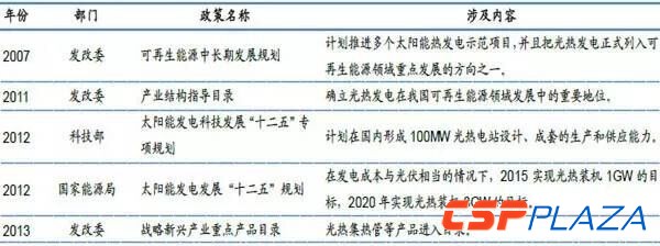 圖:我(wo)國光(guang)熱發展主要政策及(ji)規劃(來源:CSPPLAZA)