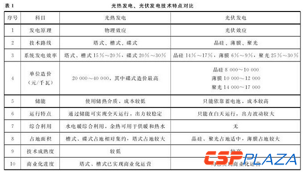 表:光(guang)熱發(fa)電(dian)(dian)和光(guang)伏(fu)發(fa)電(dian)(dian)技術特點對比