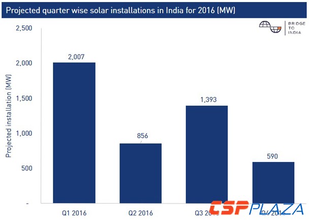 印度統計,2015年的公共事業級太陽能新增裝機量為2GW,而2016年整年預計將有4.8GW的裝機量。其中大部分將于今年第一季裝設、啟用。