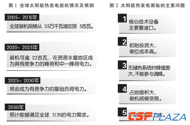 太陽能熱發電具有光利用效率較高、單機規模較大、可連續運行等優勢,是未來清潔能源發展和國家鼓勵的電力發展方向,但目前太陽能熱發電技術在逐步成熟、示范發展過程中,從技術、經濟等方面考慮,還存在一些問題(見圖2)。