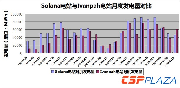 表(biao):Solana和Ivanpah兩大電站的月發電量統(tong)計