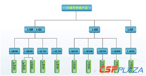 長城導熱油高溫產品L-QD400合成型導熱油具有高溫穩定性,最高允許使用溫度可達400℃,廣泛應用于光熱發電、石油化工、化纖、合成樹脂、醫藥、印染等行業。除L-QD400外,長城導熱油中低溫產品也廣泛應用于不同溫度需求的聚光熱利用系統和其他工業領域,產品具有很高的可靠性,產品線如下:
