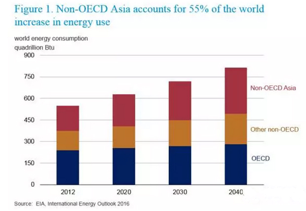 (非經合組織成員的亞洲國家能源使用率占到全球的55%)