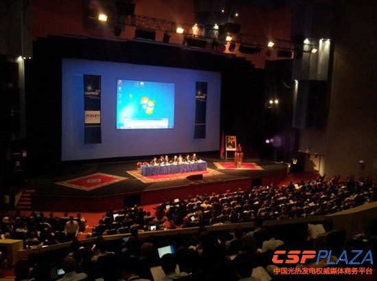 9月11日,2012SolarPACES(太陽能熱發電和熱化學組織)大會在Morocoo的Marrakech市開幕,Morocoo能源、礦產、水和環境部部長F.Douiri在大會作了歡迎致辭。來自全球的約800名代表出席了會議。中國約有30名代表參加。會議從2012年9月11日到14日。大會主席為本屆SolarPACES執行委員會主席,西班牙可再生能源研究中心Manuel J. Blanco博士。