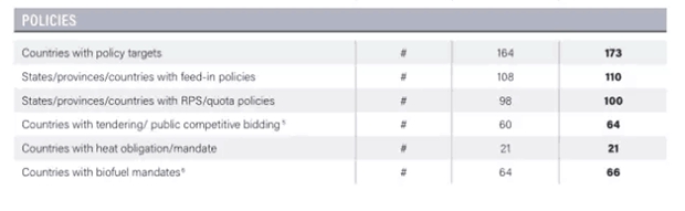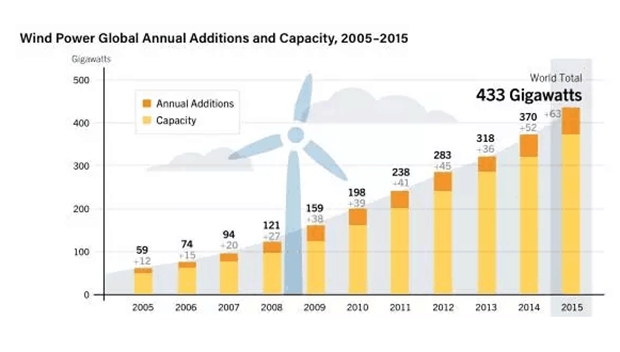 此外,在拉動可再生能源,尤其是風力發電和太陽能發電的增長方面,政府領導力仍繼續扮演著關鍵角色。截至2016年初,全球已有173個國家制定了可再生能源發展目標,146個國家出臺了支持政策。多個城市、社區以及企業率先展開迅速壯大的“100%可再生能源”行動,這在推動全球能源轉型中發揮著至關重要的作用。
