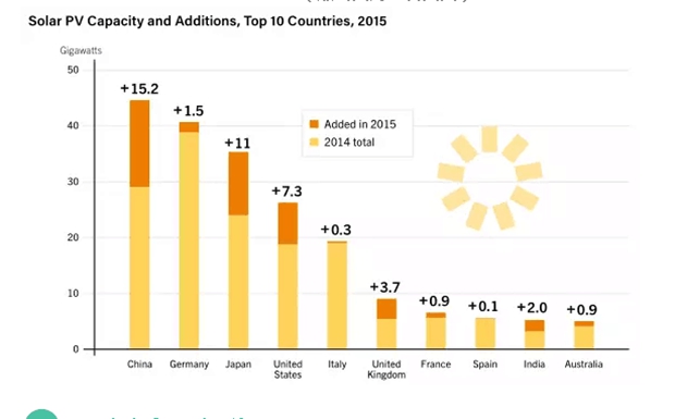 2015年太陽能總容量(liang)、新增容量(liang)排(pai)名前10位(wei)國家