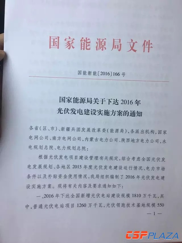 2016年光伏發電建設實施方案下發 新增18.1GW