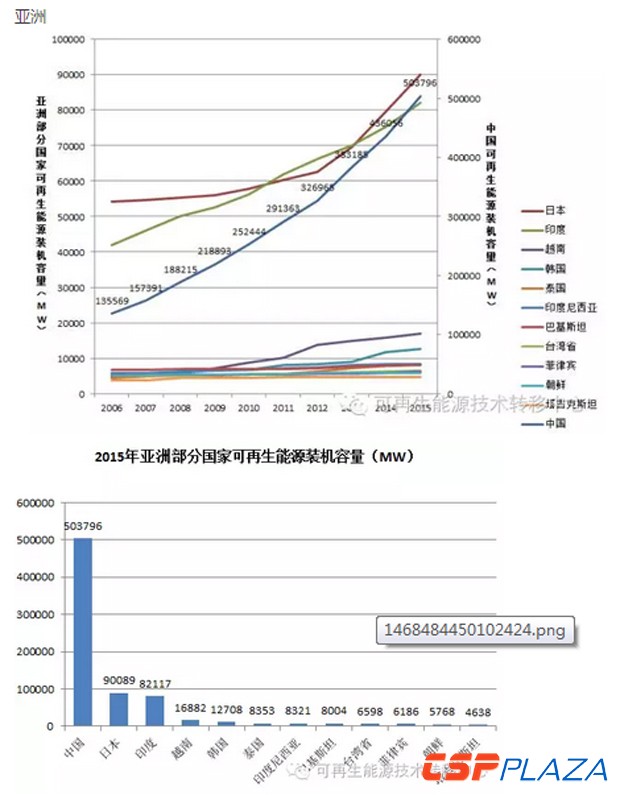 從2015年亞洲可再生能源裝機容量來看,中國可再生能源的生產總量比亞洲其它國家的總和還要多,超過60%(自豪臉)。