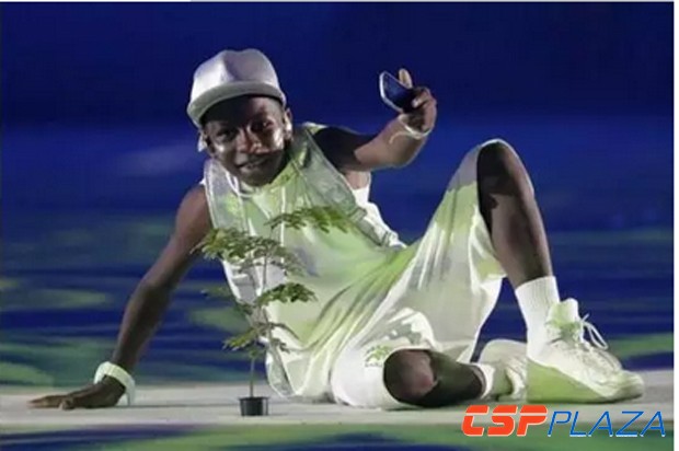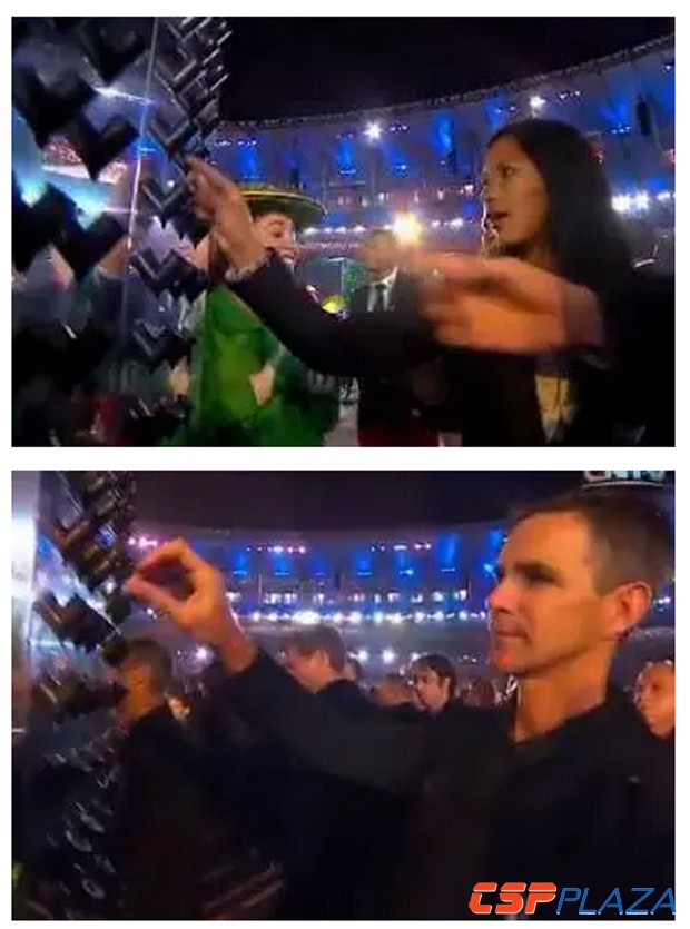 最終,鏡面“綻放”成了不分顏色,全是綠色的奧運五環。這是奧運五環絕無僅有在地面打開呈現,寓意是希望五大洲都被綠色所覆蓋,再次契合開幕式綠色環保的主題。