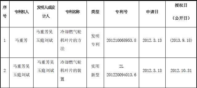 1. 2014年4月11日馬重芳團隊與蘿北百吉瑞新能源有限公司簽署合作協議,馬重芳轉讓兩項與太陽能熱發電技術沒有任何關系的非職務發明專利給百吉瑞作為技術出資,轉讓的兩項專利技術見表1。