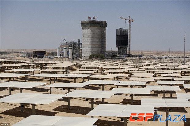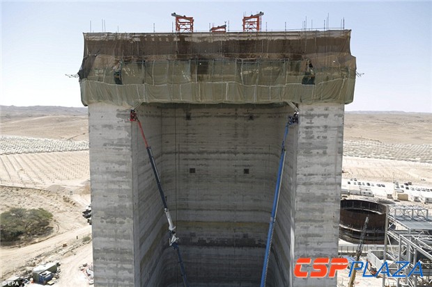 CSPPLAZA光熱發電網報道:裝機121MW的Ashalim1塔式光熱電站位于以色列在內蓋夫(Negev)沙漠,這座塔式光熱電站總占地面積為3.15平方公里,場地中央矗立著Ashalim塔,高240米——是世界上最高的集熱塔,塔底將安裝約5.5萬面鏡子,占地面積約400個足球場大小,這一浩大的工程構成了沙漠中的一幅奇景。