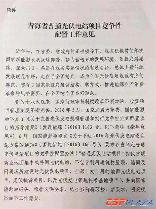 8月17日,青海省(sheng)發改委(wei)下發了《關于印發青海省(sheng)普(pu)通光(guang)伏電站項(xiang)目競爭性(xing)配置工作意見的(de)通知(zhi)》,計劃對1GW普(pu)通光(guang)伏電站指標進行競爭性(xing)分配,
