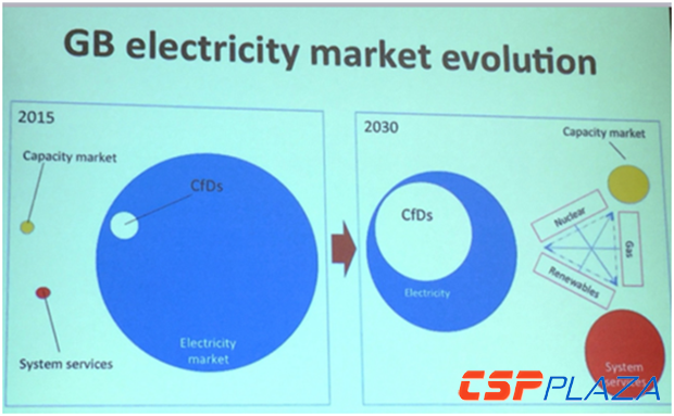 能源的發展對未來的市場架構是一個非常重要的要素。我國新一輪的電市化改革剛剛啟動,新能源市場剛剛建立,大家的關注點主要集中在售電市場怎么匹配,新的售電領域怎么劃分,并沒有過多的考慮可再生能源在未來的市場架構中相應機制的設計,實際上這是我們需要高度重視的一個方面。以英國為例,以下是英國電力市場的分析: