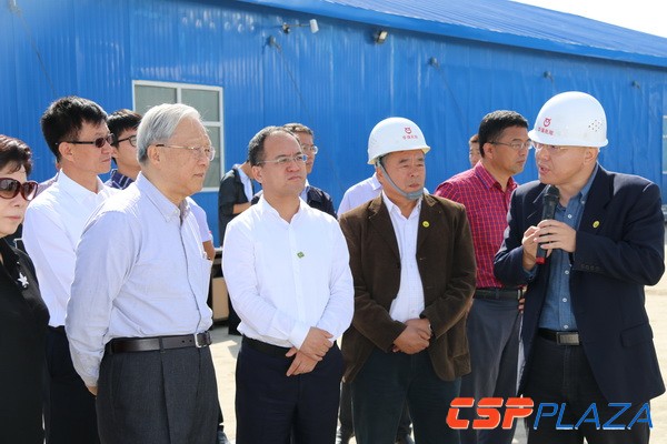 9月6日,全國人大常委會原副委員長、中國科學院原院長路甬祥一行,率中國科學院電工所研究團隊,到河北省張家口市張北縣調研指導了華強集團“張家口一號15兆瓦太陽能熱發電站及配套農業設施項目”建設情況,并對光熱能源產業的發展提出了建設性意見,他指出:光熱發電應創新設計、發揮特長、放眼全球。