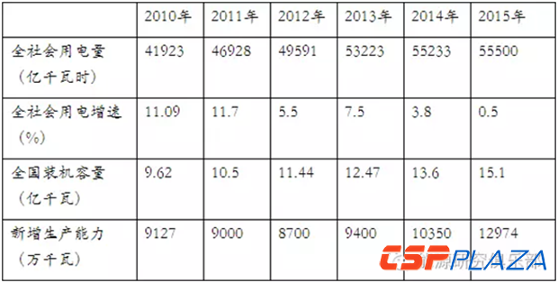 據官方統計,2015年我國全社會用電量5.55萬億千瓦時,增速只有0.5%,為近年來最低增速;同期電力裝機新增1.3億千瓦,絕對增量為歷史之最,增速達9.54%。“十二五”期間,全社會年用電量增長1.36萬億千瓦時,增幅為32.39%;發電裝機增長5.48億千瓦,增幅達到56.96%,高出用電量增幅24.57個百分點(詳見表4)。