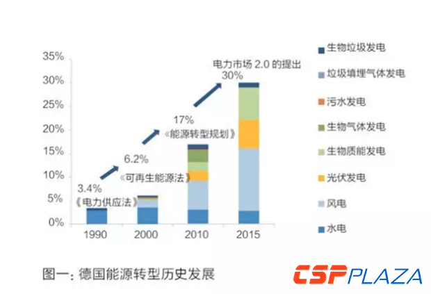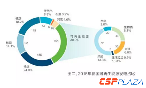 德國能源轉型成效卓著,2015年德國年發電總量達648太瓦時,可再生能源發電194太瓦時,占發電總比重的30%。其中尤以風光發電為主,分別占比13.3%與6%。