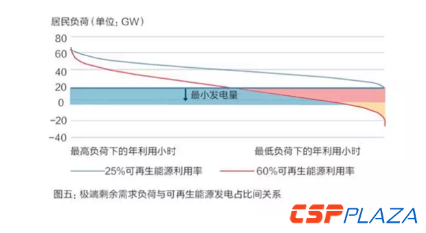 由于政策已制訂了未來可再生能源發電高比例增長的目標,而目前市場上低邊際成本的風電光伏又能優先并網發電,剩余需求負荷(residualload)于是成為影響電力市場設計的一個重要概念。它指除去風光發電外、剩余發電組合所需承擔的電力需求量。圖四分別給出了冬夏季可再生能源發電量與剩余需求負荷間的普遍關系,夏季風光發電多,需求總量較小,剩余需求負荷小;冬季反之。未來還可能出現兩種極端情況:1.最大剩余需求負荷:用電需求高,同時幾乎不產生風能和太陽能,這可能發生在一個寒冷無風的冬夜;2.最小剩余需求負荷:電力需求低,但同時產生大量風能和太陽能發電,這可能發生在有風和/或陽光明媚的周末或節假日。
