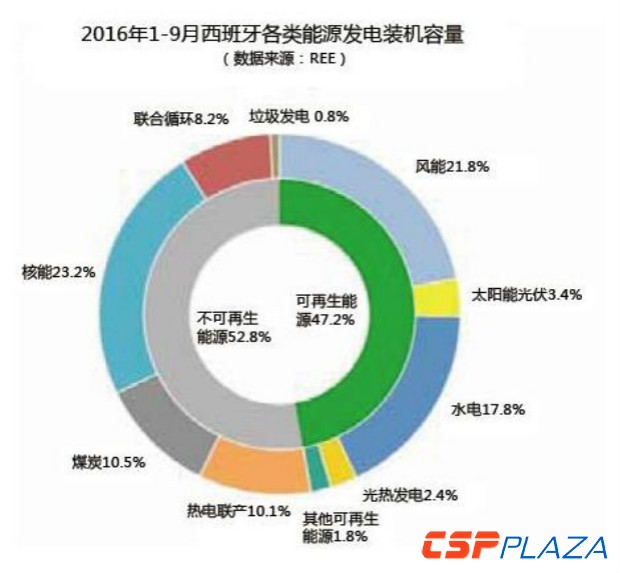 據(ju)西(xi)班牙(ya)(ya)輸電系(xi)統運營商(shang)西(xi)班牙(ya)(ya)電網公(gong)司(REE)報道,2016年的(de)前8個月,西(xi)班牙(ya)(ya)可再(zai)生(sheng)能源在發電結構(gou)中的(de)比重平均達到47.2%,令(ling)人印象深刻(ke)。