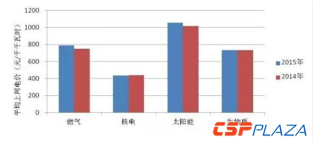 報告顯示,2015年,全國發電企業平均上網電價為388.25元/千千瓦時,同比下降2.61%。其中,太陽能發電最高,為1056.89元/千千瓦時,水力發電最低,為286.93元/千千瓦時。