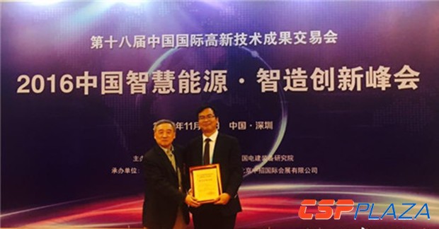 在互聯網技術迅猛發展的全球大背景下,“智造”成為全球工業產業的必然出口。2016年11月17日,第十八屆中國國際高新技術成果交易會在深圳會展中心隆重開幕,深圳市愛能森科技有限公司攜自主創新“塔式光熱發電儲能+智慧能源管理”系統重大項目成果精彩亮相。愛能森“風光熱電儲智慧能源系統解決方案”經過初審、復審等嚴格評選,榮獲“中國智慧能源·智造創新峰會”智造創新金獎。國務院參事、原國家發展改革委能源局局長、國家能源領導小組辦公室副主任、高級工程師徐錠明先生參會并為獲獎單位頒獎。