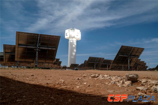 經過技術的進一步改進,目前該電站在日落后也可以供電2到3小時的電力。該電站集熱塔高約為205米,總共安裝了約4160套定日鏡系統,單套定日鏡采光面積為140平方米,總采光面積約576800平方米。它們能夠跟蹤太陽的運動軌跡,將太陽光線反射到到集熱塔上,吸熱器內的水受熱產生蒸汽,從而驅動汽輪機轉動產生電能。