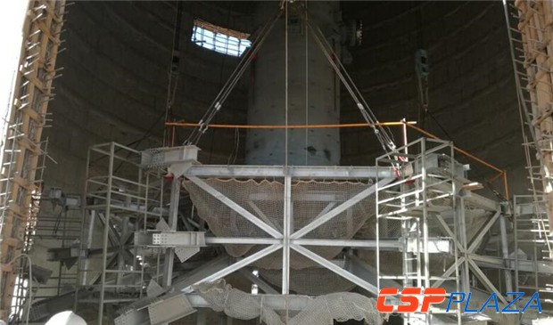 CSPPLAZA光熱發電網訊:據山東電建三公司方面消息,日前摩洛哥(ge)NoorⅢ光塔(ta)內部180m平臺及入口熔(rong)鹽罐吊(diao)裝工(gong)作順利(li)完成。
