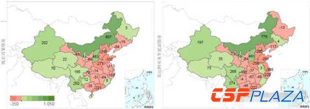 圖:兩種情(qing)景下2030年各省市區凈輸出電(dian)量(單位(wei):10億千瓦(wa)時)