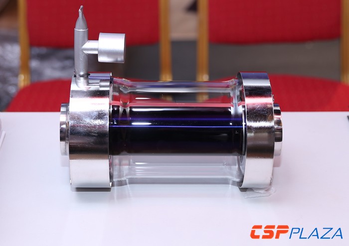 A6展位的匯銀集團是領先的集熱管制造商,其宣稱,已為美國、西班牙、德國等客戶供貨集熱管超過250MW裝機容量。其集熱管年產能可供應500MW光熱電站,目前正在執行1000MW項目訂單。技術層面上,該公司稱其已徹底解決了集熱管的氫滲透問題,可在線重復抽真空。其此次也展示了其新型熔鹽集熱管產品,引發了廣泛關注。