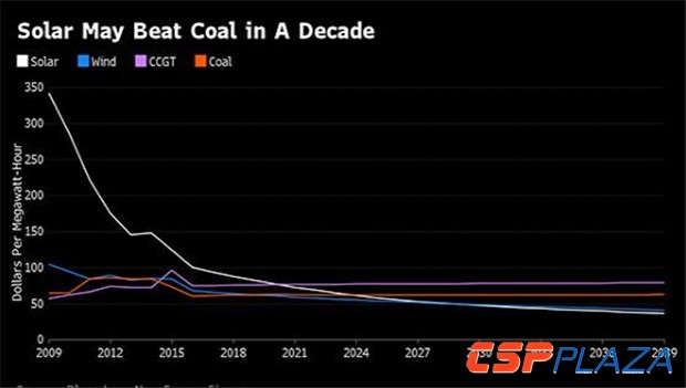 圖:太陽能成本(ben)在未來10年內會(hui)低于煤炭
