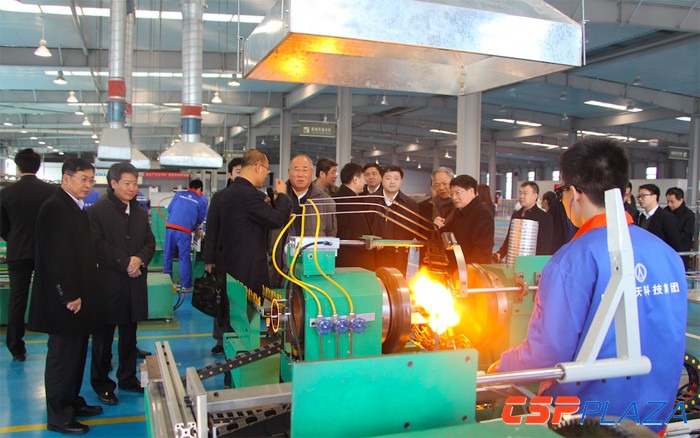圖:相關領導參觀天瑞星集熱管生產線