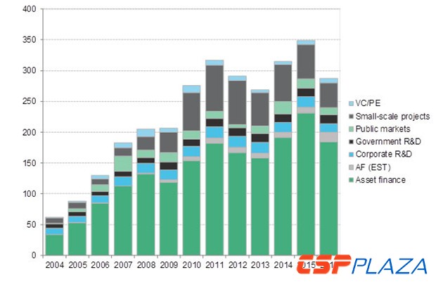 2016年,清潔能源公共市場投資規模達到121億美元,同比下降21%;風險投資和私募股權投資達到75億美元,同比增長19%;企業清潔能源研發投入達到134億美元,同比下降21%;政府研發投入達到141億美元,同比增長8%。