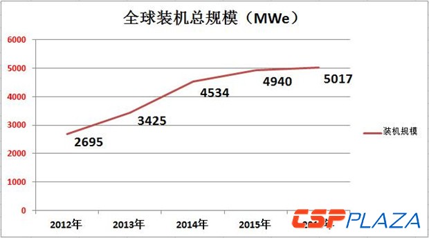 圖:2012~2016年全球總(zong)CSP建(jian)成裝(zhuang)機(制圖:CSPPLAZA)