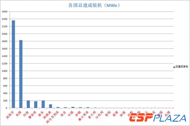 圖(tu)(tu):各(ge)國總(zong)CSP建成裝機圖(tu)(tu)(制圖(tu)(tu):CSPPLAZA)