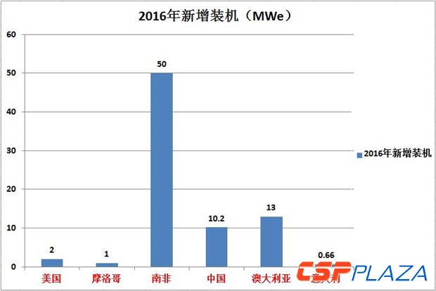 圖:各國2016年新(xin)增CSP建成裝(zhuang)機(制(zhi)圖:CSPPLAZA)