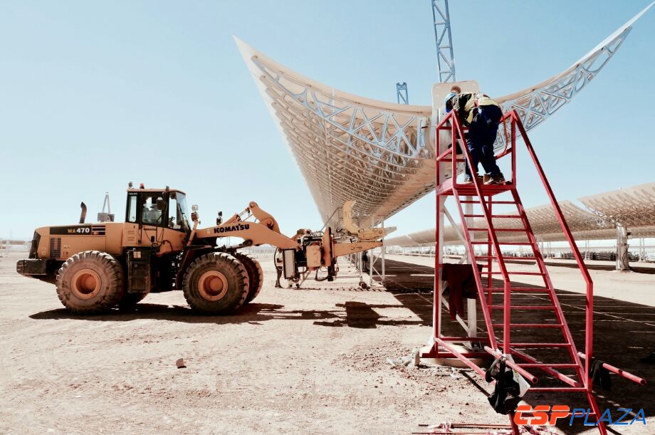 摩洛哥Noor 2項目鏡(jing)(jing)場共(gong)有(you)回路(lu)(lu)(“U”loop)425個(ge),每個(ge)回路(lu)(lu)有(you)太陽能集熱器SCE(Solar Collector Element)48個(ge),全場共(gong)有(you)SCE20400個(ge),每個(ge)SCE由32面鏡(jing)(jing)子組裝完成(cheng),全場共(gong)計由652800鏡(jing)(jing)子構(gou)成(cheng)。在鏡(jing)(jing)場項目執(zhi)行過(guo)程(cheng)中,山東電建三公司負責鏡(jing)(jing)場場平、鏡(jing)(jing)場樁基及導熱油管道(dao)施(shi)工等工作(zuo),SENER負責鏡(jing)(jing)面的(de)組合安(an)裝等工作(zuo),在項目執(zhi)行過(guo)程(cheng)中雙(shuang)方密切(qie)配合,有(you)效溝通,確保了鏡(jing)(jing)場槽式鏡(jing)(jing)安(an)裝工作(zuo)的(de)圓滿完成(cheng)。